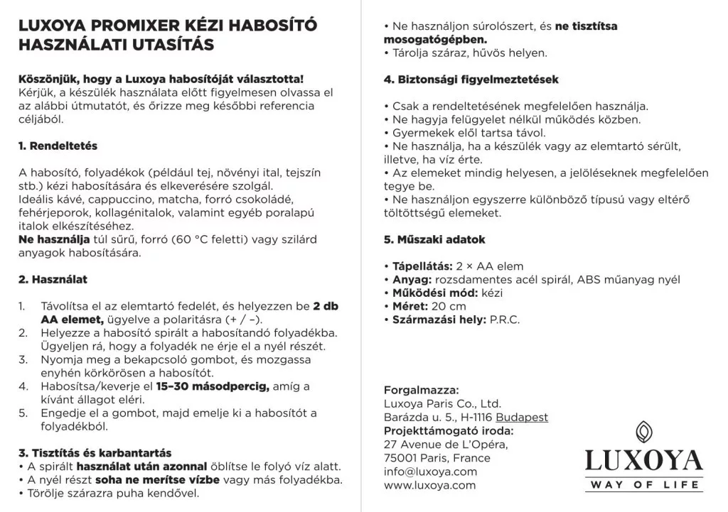 Luxoya Pro Mixer kézi habosító előnyök